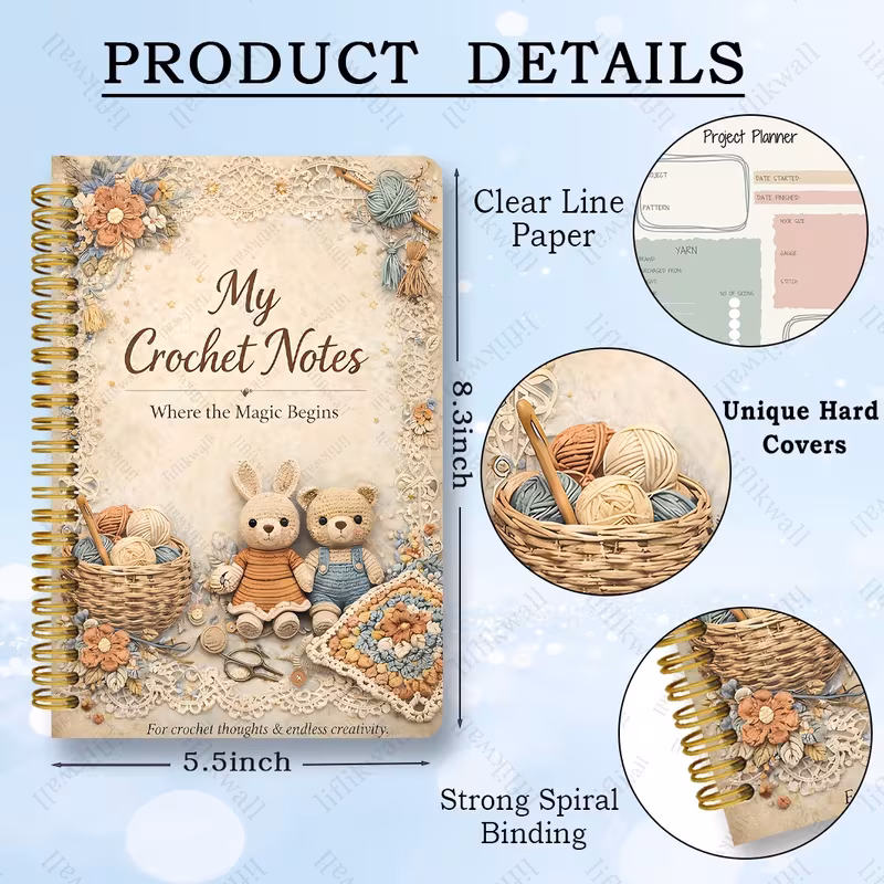 Crochet & Knitting Planner Notebook – Spiral-Bound Project Planner with Horizontal Ruler Pages, Premium-Quality Paper for Yarn Projects, Yarn Trackers and Crochet Charts, Portable and Easy to Organize